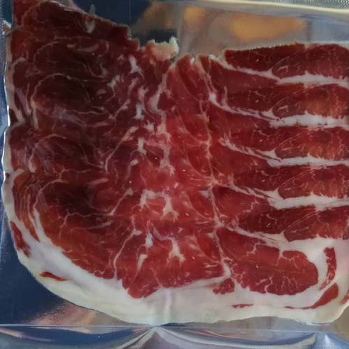 Le jambon de Cebo Ibérique est issu de porcs élevés en ferme et nourris exclusivement avec des céréales et des légumineuses naturelles. Il possède les qualités typiques du jambon ibérique avec une texture tendre et un goût équilibré et savoureux, légèrement noisetté.